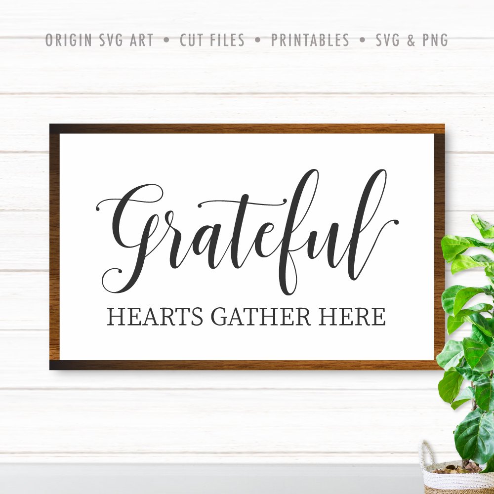 Grateful Hearts Gather Here, Thanksgiving SVG. Printable Wall Decor, Wall Sign, Printable Sign, Commercial Use, File Download, SVG PNG. Ready to download for card design, t-shirt, mug, pillow, art and craft, or other artworks.