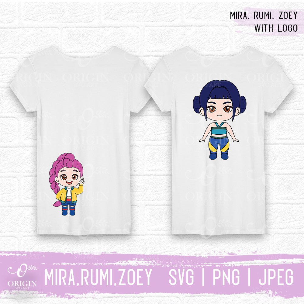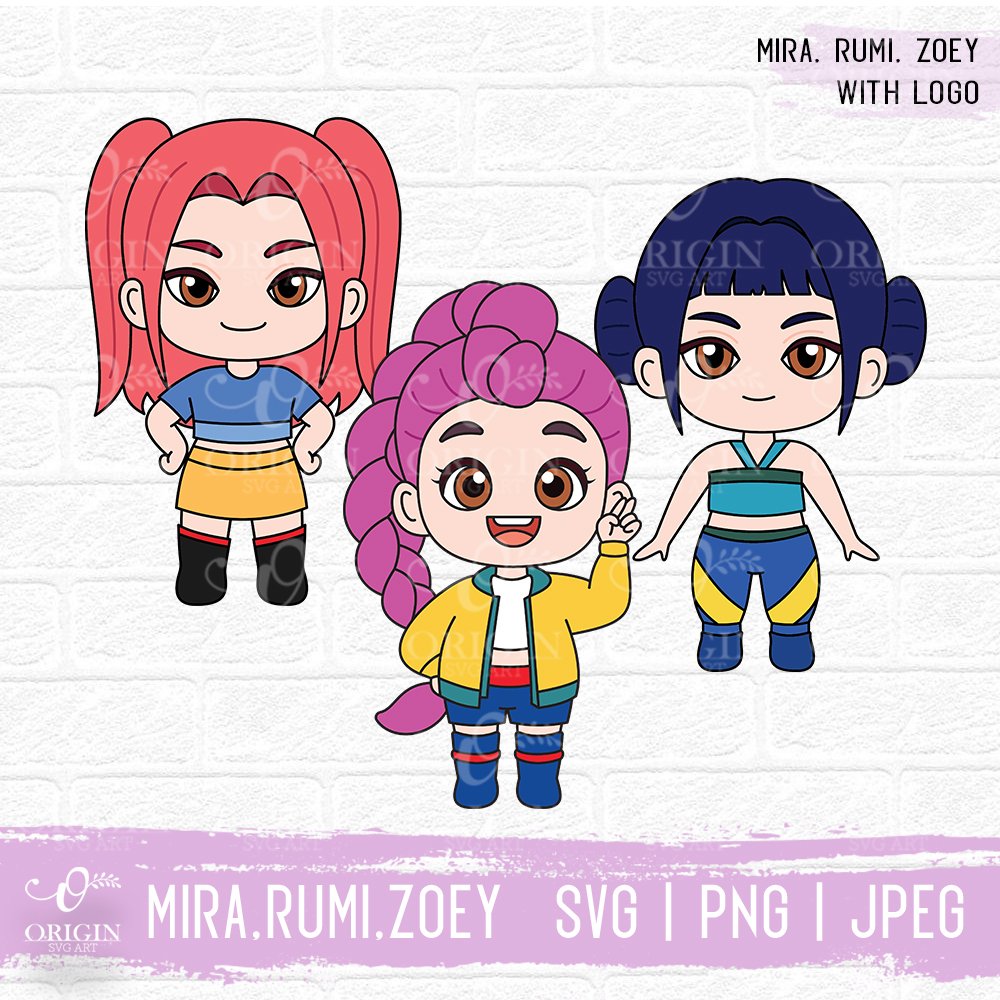 Kpop Demon Hunters SVG, Mira, Rumi, Zoey, Huntrix,  t-shirt design, sticker, PNG, JPEG file, digital download.